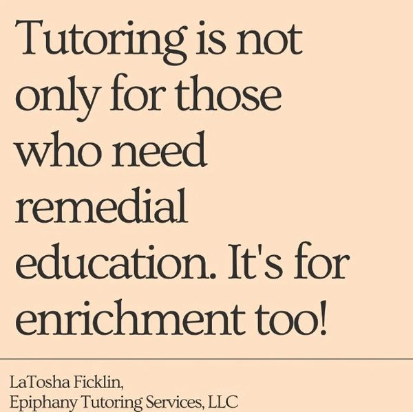 My name is LaTosha Ficklin and I am the owner/tutor of Epiphany Tutoring Services, LLC. As the tutor, I bring you 10+ years of teaching experience. I obtained my Bachelor's Degree in Early Childhood Education from the College of Charleston and my Master's Degree in Elementary Reading and Mathematics from Walden University.